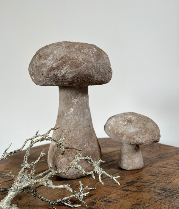 Voeg een vleugje natuur en sereniteit toe aan je interieur met deze bijzondere set papier-maché paddenstoelen, die warmte en rust uitstralen.